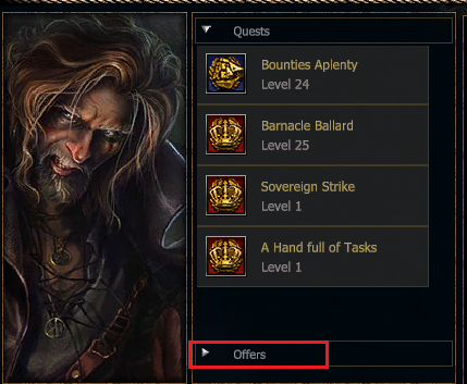 Sail to 24/1, click on Monroe Robinson and select Offers to see newly added Sellsword and Guardian Level 4.